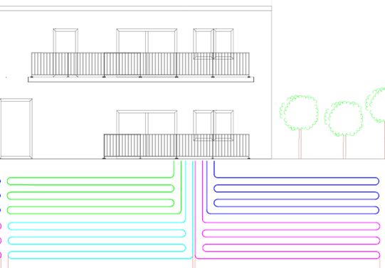 Avec la réduction du besoin en chauffage, les capteurs peuvent maintenant facilement se positionner le long de la parcelle sur le trottoir si on veut opérer une boucle d'eau tempérée
